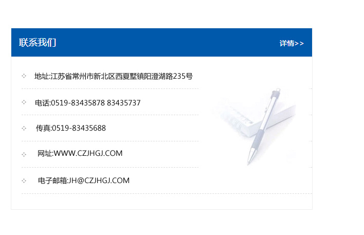 地址:常州市新北區友邦商務大廈1幢16、17層  電話:0519-85101652  傳真:0519-85112595  郵編:213022  網址:www_cz-jiayue_cn.xianjr.com  郵箱:xiajifengaa@163.com
